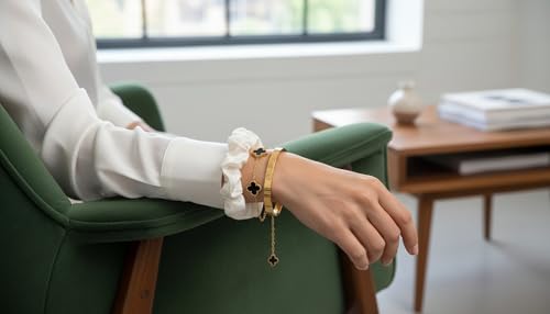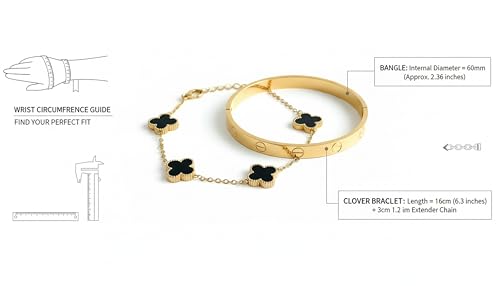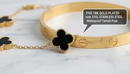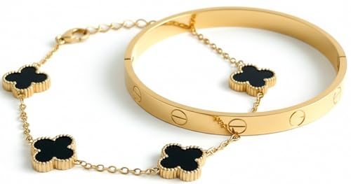 Generic - طقم مجوهرات من الستانلس ستيل مطلي بالذهب عيار 18 قيراط للنساء من جاست سالم، سوار حلقي ببرغي أيقوني وسوار بتعليقة على شكل عقيق يماني اسود، لا يسبب الحساسية، مجوهرات عصرية قابلة للتكديس ولا تفقد بريقها