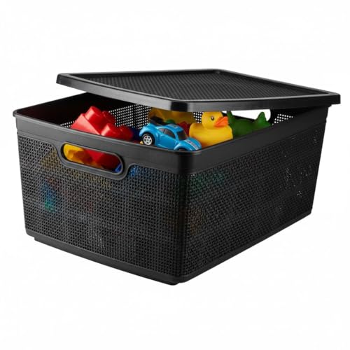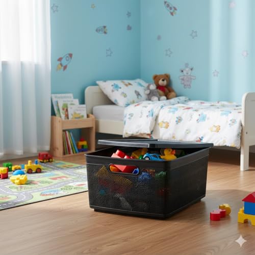 Generic - صندوق تخزين جوتي بغطاء وعجلات، أسود، متعدد الاستخدامات للألعاب ومستلزمات الحمام والأدوات المكتبية