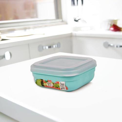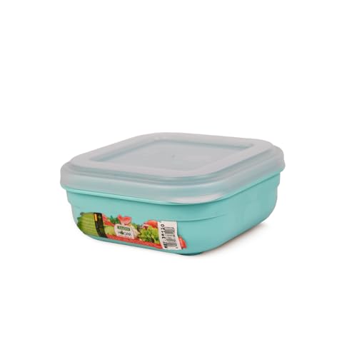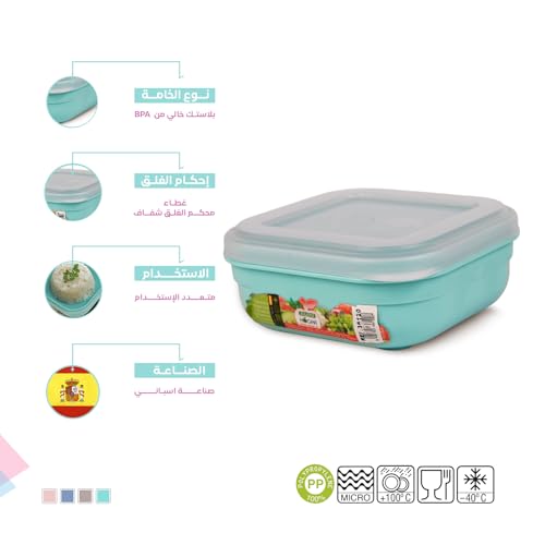 Juypal Hogar - علبة حفظ طعام بلاستيك مربعة خالية من مادة بيسفينول أ مع غطاء شفاف محكم الإغلاق آمنة في المايكروويف والفريزر وغسالة الأطباق من جويبال هوجار، لون أخضر، سعة 0.7 لتر، صنع في أسبانيا