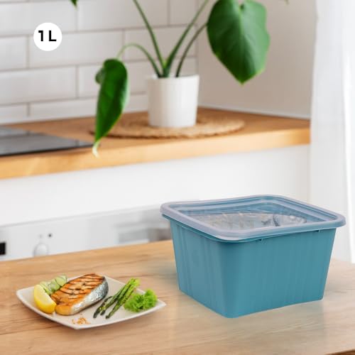 Juypal Hogar - علبة تخزين طعام بلاستيك بيضاوية الشكل محكمة الغلق من جويبال هوجار، قطعتين كل منها بسعة 1 لتر، أزرق ناعم