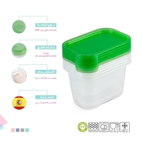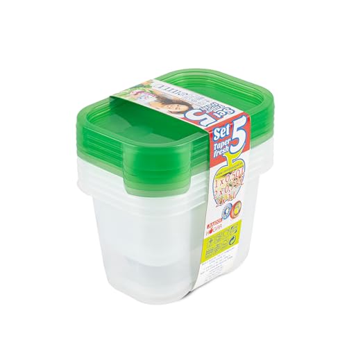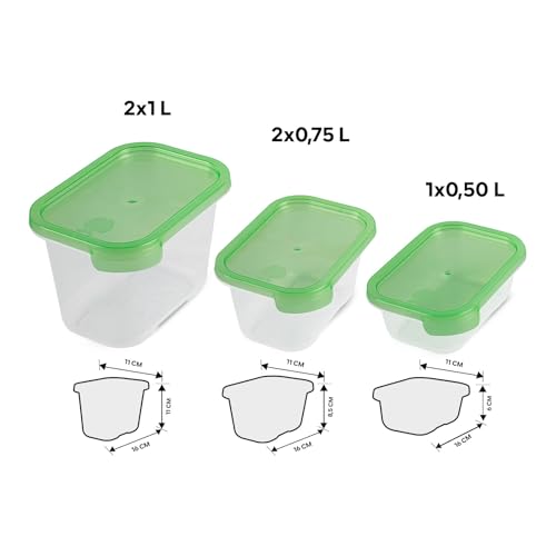 Juypal Hogar - صندوق تخزين طعام طازج مربع هوجار من جويبال، 5 قطع، سعة 4 لتر، اخضر