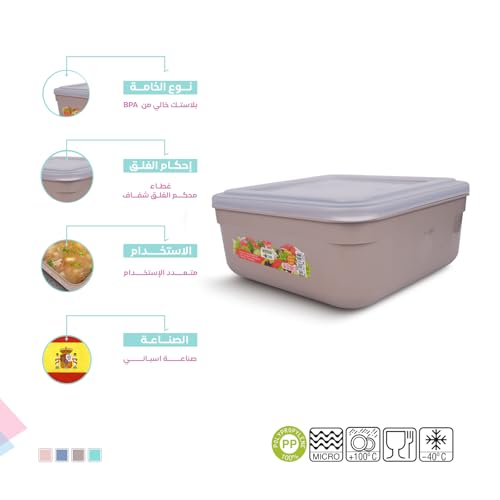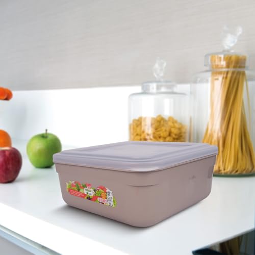 Juypal Hogar - علبة حفظ طعام بلاستيك مربعة خالية من مادة بيسفينول أ مع غطاء شفاف محكم الإغلاق آمنة في المايكروويف والفريزر وغسالة الأطباق متعددة الاستخدامات من جويبال هوجار، لون بيج، سعة 5 لتر، صنع في أسبانيا