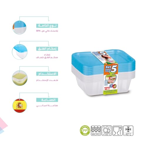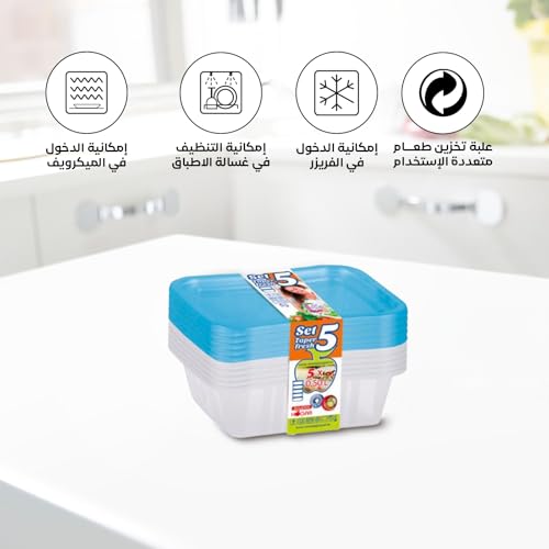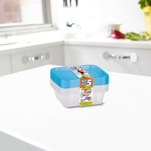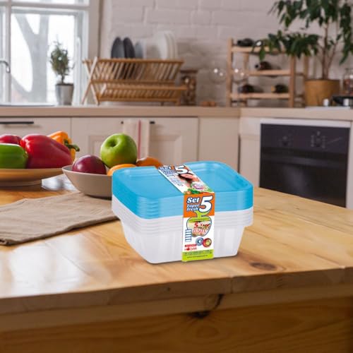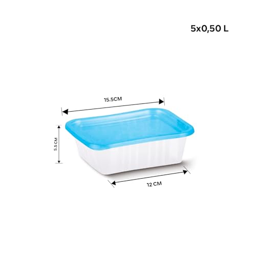 Juypal Hogar - علبة تخزين طعام تابر فريش بتصميم بيضاوي محكم الغلق جويبال هوجار، من 5 قطع، سعة 0.50 لتر، بلون أزرق