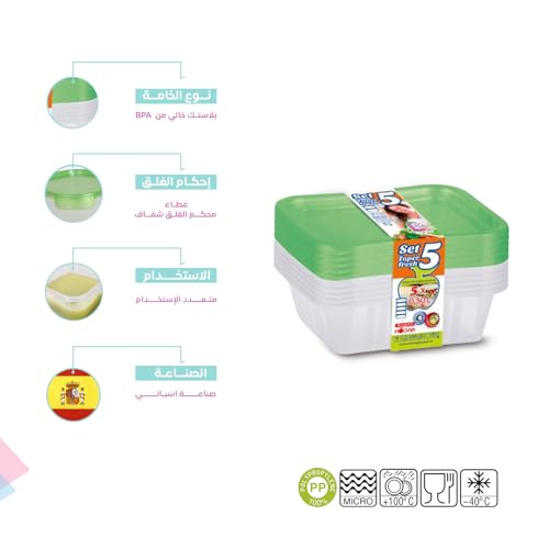 Juypal Hogar - صندوق تخزين طعام هوجار تابر فريش بيضاوي محكم الغلق من جويبال، 5 قطع، سعة 0.5 لتر، لون أخضر