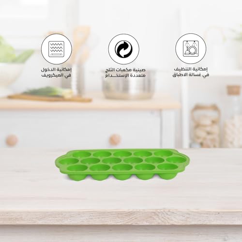 Juypal Hogar - صينية مكعبات ثلج من بلاستيك خالٍ من مادة البيسفينول أ وسهلة التحرير وقابلة لإعادة الاستخدام وآمنة للاستخدام في الفريزر وصنعت في إسبانيا من جويبال هوجار، أخضر، 16 كرة ثلج دائرية