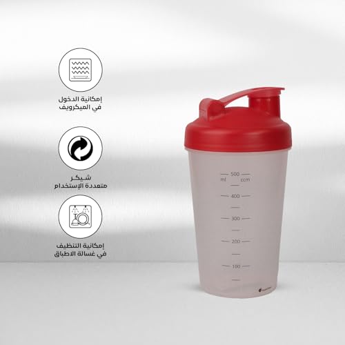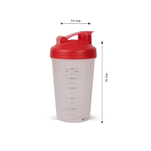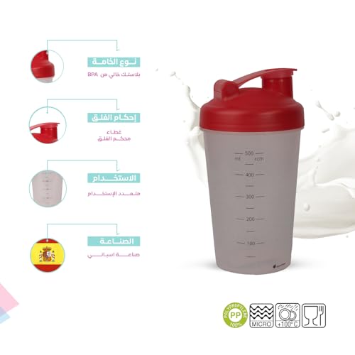 Juypal Hogar - زجاجة شيكر للبروتين خالية من بيسفينول أ مع غطاء قلاب محكم لمنع التسرب ومقياس سوائل مناسبة لعصائر السموذي للجيم من جويبال هوجار، صنعت في إسبانيا، 500 مل، أحمر