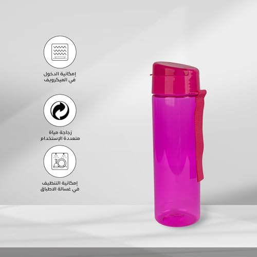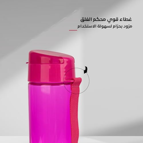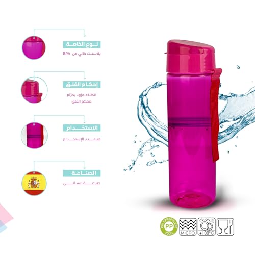 Juypal Hogar - زجاجة مياه تريتان 600 مل خالية من البيسفينول أ ومانعة للتسرب مع حزام - آمنة للاستخدام في الميكروويف وغسالة الأطباق - خفيفة الوزن - صنعت في إسبانيا - لون وردي من جويبال هوجار