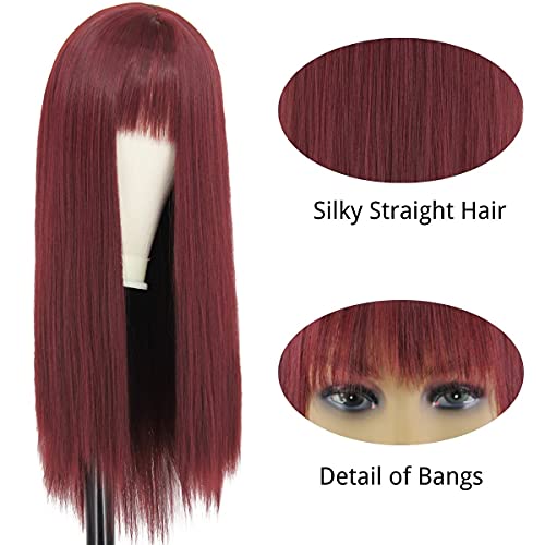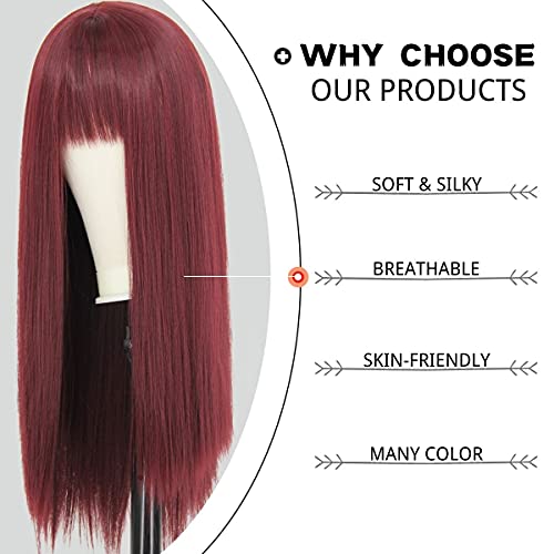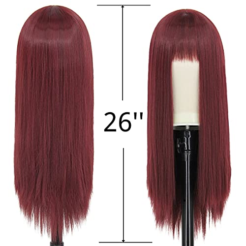 Juziviee - باروكة حريمي من جوزيفي بطول 26 بوصة بلون احمر واين وبتغطية كاملة للرأس، شعر مستعار مستقيم صناعي للحفلات اليومية VK005BU