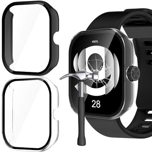 Jvchengxi - واقي شاشة للساعة متوافق مع ساعة شاومي ريدمي ووتش 4، هيكل واقي صلب من البولي كربونات والزجاج المقوى مقاوم للخدش، هيكل واقي كامل لساعة ريدمي 4 بلون أسود من 2 قطعة من جيه في تشينجشي