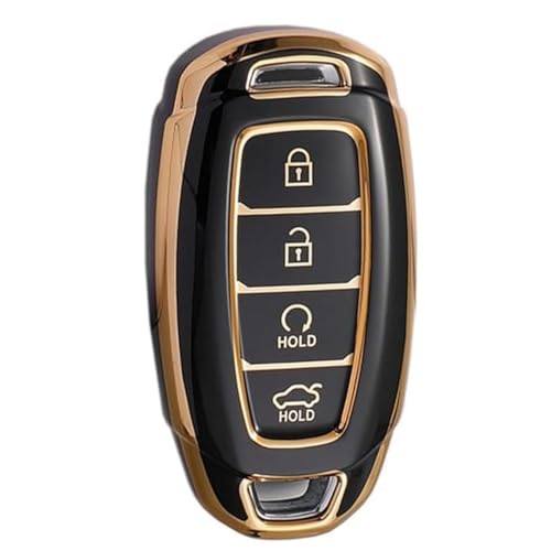 JVCV - غطاء مفتاح من البولي يوريثين الحراري بحواف ذهبية، مفتاح ذكي بـ 4 أزرار من JVCV® (أسود)