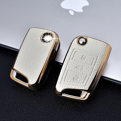JVCV - غطاء مفتاح ناعم بحواف ذهبية من جلد البولي يوريثين الحراري قابل للطي من جيه في سي في® (أبيض)