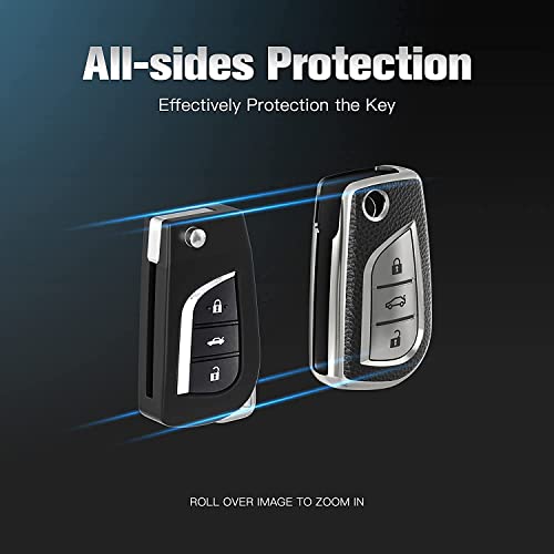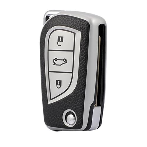 JVCV - غطاء مفتاح من جلد البولي يوريثين الحراري الناعم الممتاز متوافق مع مفتاح تويوتا انوفا كريستا وكورولا التيس من جيه في سي في ® (فضي)