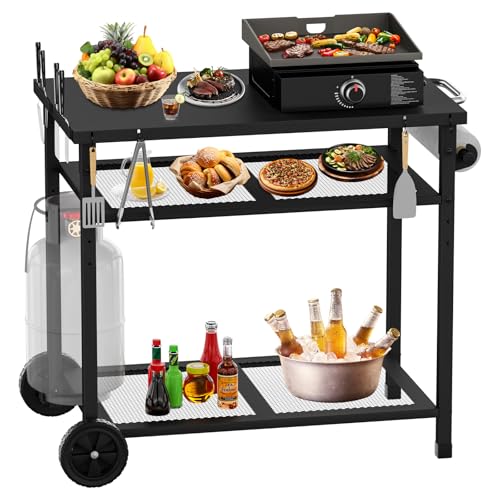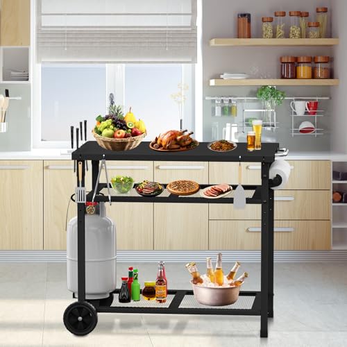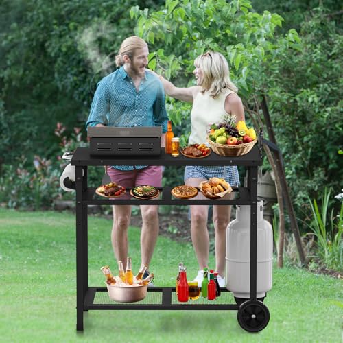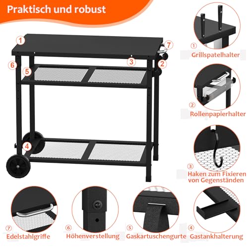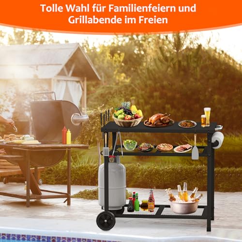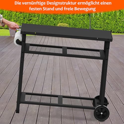 JYiuog - عربة شواء متعددة الوظائف من جيوج، عربة شواء خارجية من 3 طبقات مع حامل مناشف ورقية وخطافات، لون اسود