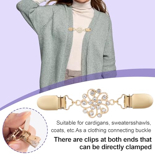 JYvivid - 4 قطع من مشابك الفساتين من جيفيفيد، مشبك خصر كلاسيكي من خليط معدني، مشبك كارديجان كلاسيكي، قبعة فستان وقميص وشال وكارديجان للنساء