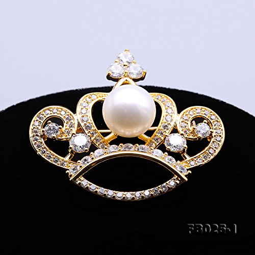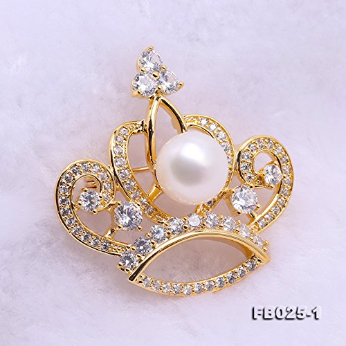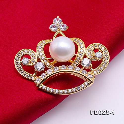 JYX Pearl - دبوس بروش على شكل تاج من لؤلؤ المياه العذبة الابيض من جيه واي اكس، هدايا الزفاف واعياد الميلاد للام والفتيات، لون ذهبي