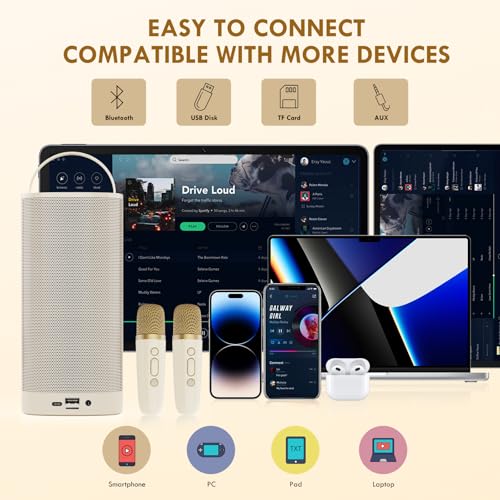 - 【ميكروفون مزدوج، مضاعفة المرح】تأتي آلة الكاريوكي الصغيرة للأطفال والبالغين مع ميكروفونين لاسلكيين، مصممة لالتقاط صوت واضح ومنع ردود الفعل. سواء كانت ثنائية أو أداء فردي، تصبح كل أغنية فرصة لبناء الثقة والإبداع لدى طفلك.