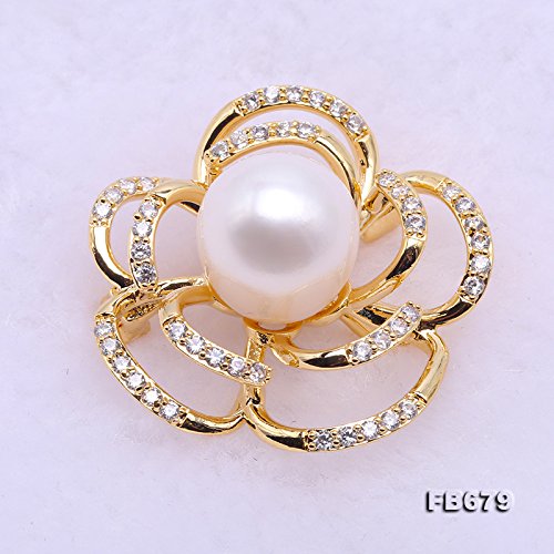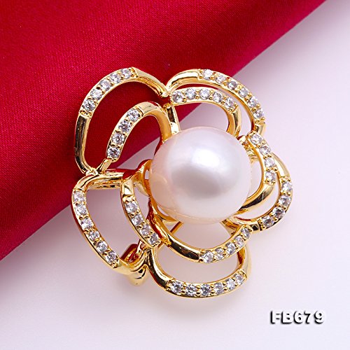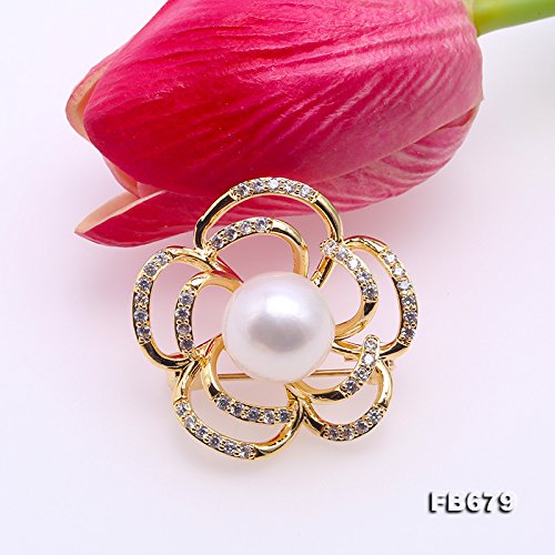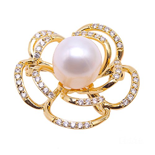 JYX Pearl - جيه واي اكس بيرل دبوس بروش على شكل زهرة بجودة ايه ايه 12.5 من لؤلؤ المياه العذبة، دبوس باقة لؤلؤ، لؤلؤ،