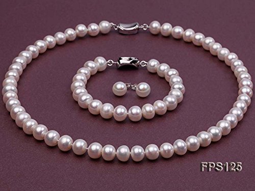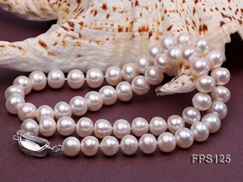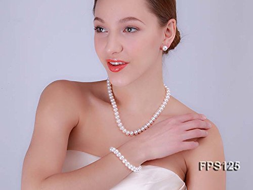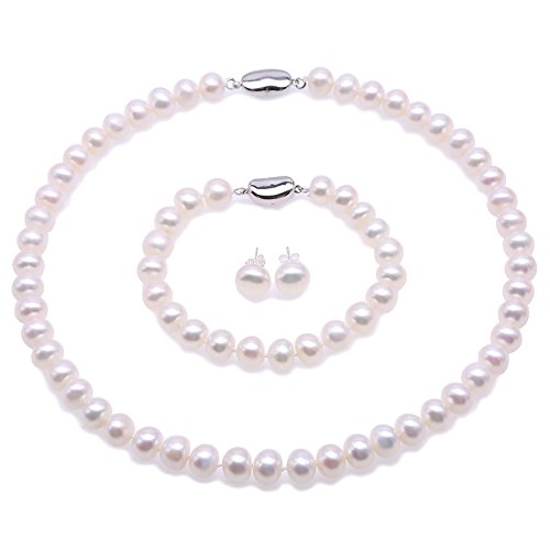 JYX Pearl - مجموعة عقد لؤلؤ جودة AAA + سمكه 9-10 ملم مسطح قلادة وسوار و حلق من المياه العذبة جيه واي اكس بلون ابيض 9-10mm احجار كريمة للنساء