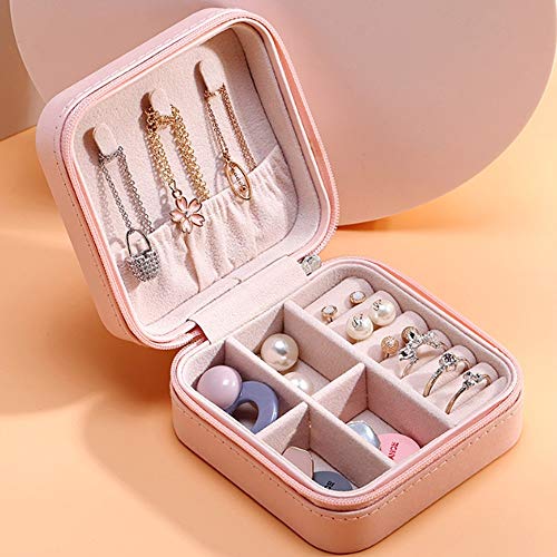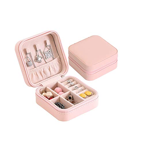 JZDH - صندوق تخزين محمول بسيط وصغير ومبتكر من طبقة واحدة لتخزين المجوهرات والحلقان والخواتم من جيه زد دي اتش، جلد صناعي