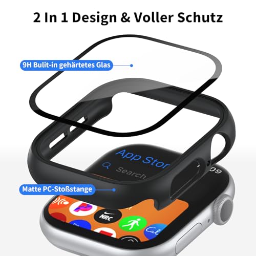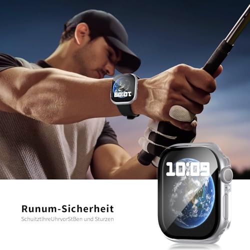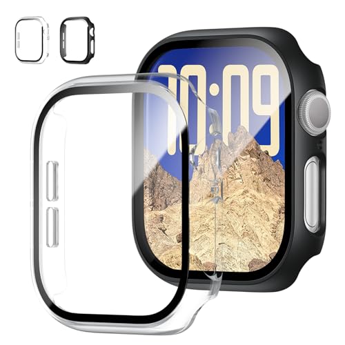 JZK - واقي شاشة بطبقة من زجاج مقوى لساعة آبل ووتش سيريز 10 46 ملم، شاشة حماية بتغطية كاملة من بولي كربونات الصلب بإطار رفيع جدًا ممتص للصدمات لساعة اي ووتش 10 46 ملم - قطعتان