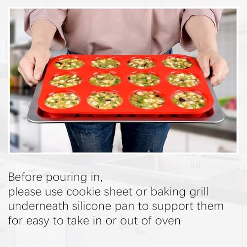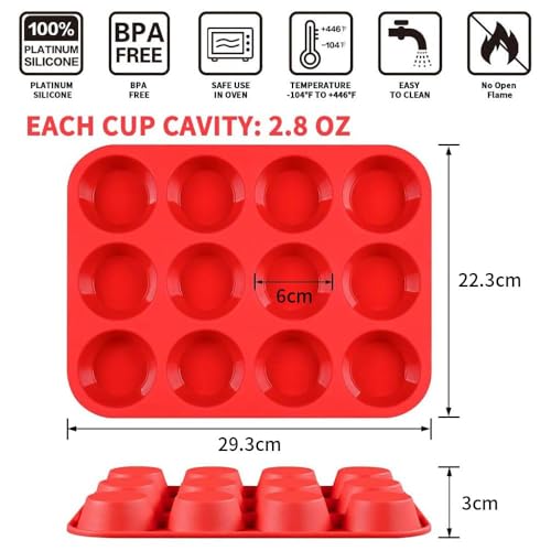 JZS - جي زي اس صينية مافن سيليكون 12 كوب، سيليكون غير لاصق رائع لصنع كعك المافن والتارت والخبز - خالية من BPA وامنة للاستخدام في غسالة الصحون (احمر)