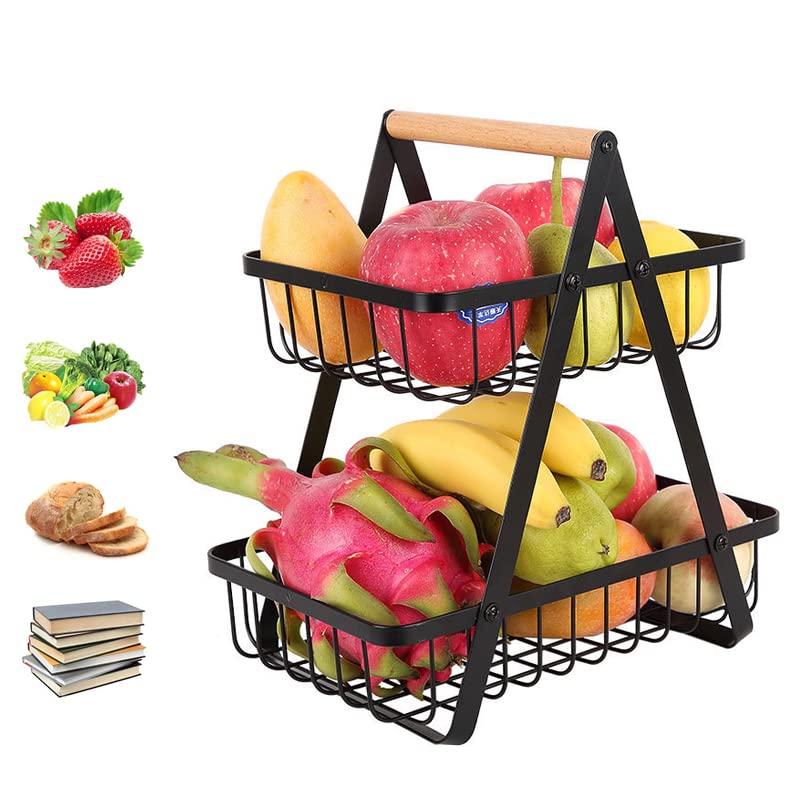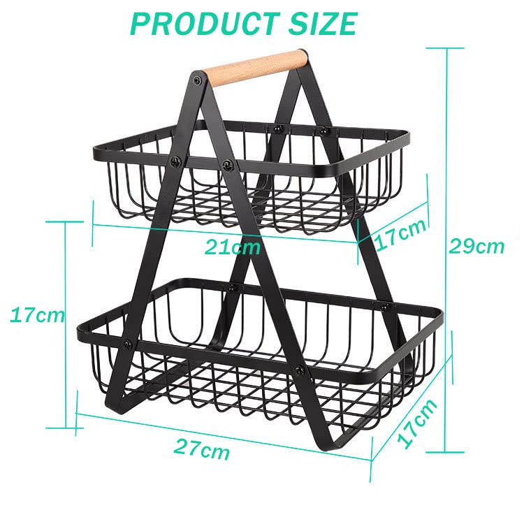 - 【تقنية رائعة】تأتي سلة الفاكهة المكونة من طبقتين بمقبض خشبي مصنوع من الخشب الصلب. مزيج من الخشب والحديد يجعل التصميم العام أكثر طبيعية. مقبض مدمج يجعل من السهل نقل البضائع من مخزن المؤن إلى الطاولة.