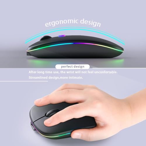 - ماوس بلوتوث لاسلكي من كانمابك، ماوس محمول مزدوج الوضع قابل لإعادة الشحن بإضاءة ليد (بلوتوث 5.2 ومستقبل USB)، للاب توب/ الكمبيوتر المكتبي/ التابلت (أسود)