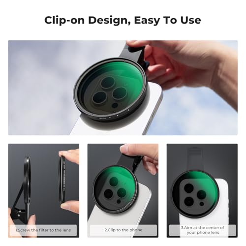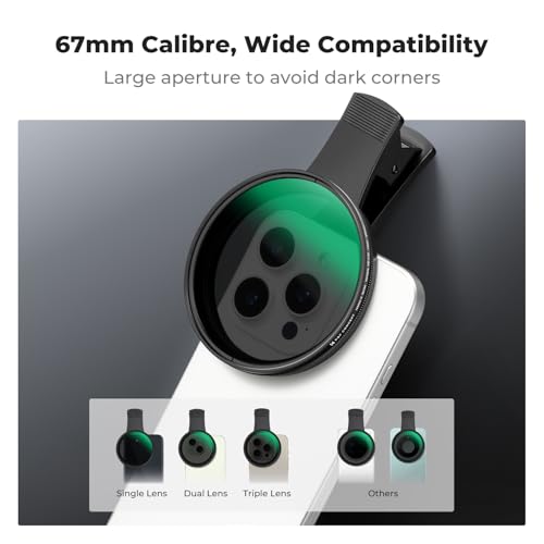 K&F CONCEPT - مفهوم K& مجموعة فلتر عدسة كاميرا الهاتف 67 ملم بمشبك ND2-32، فلتر متعدد الطبقات متغير الكثافة لتقليل الضوء متوافق مع ايفون 16 15 14 13 12 11 وغيرها من الهواتف الذكية