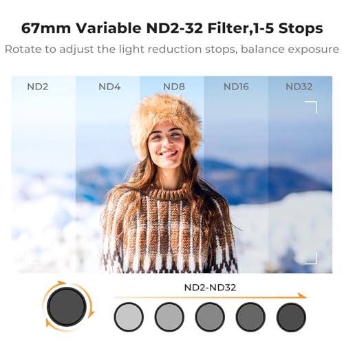 - التقط مثل كاميرا دي اس ال ار برو: تتضمن مجموعة فلتر ND2-32 المزودة بمشبك من كيه اند اف كونسيبت فلتر سلسلة نانو كيه اند اف كونسيبت 67 ملم متغير nd2-32 ومشبك للجوال، وهي مناسبة لقطات السفر وتصوير الشوارع والمناظر الطبيعية الخارجية والتصوير الفوتوغرافي بفاصل زمني وانستغرام وحفلات الزفاف والعطلات وغيرها من التصوير الممتع وما إلى ذلك.