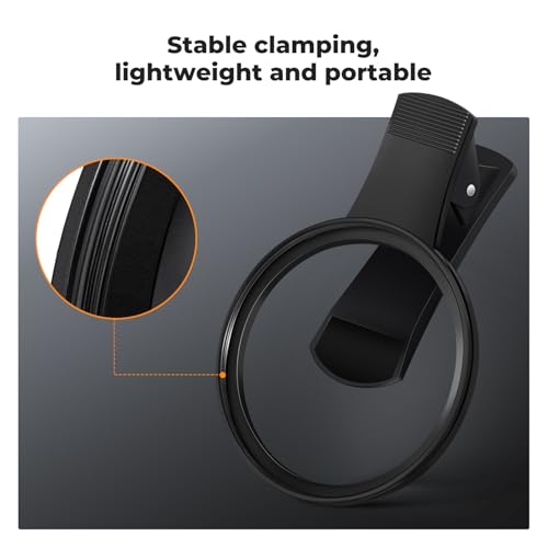 - توافق واسع: يمكن تثبيت المشبك على معظم الهواتف الذكية لالتقاط صور مثل كاميرا اس ال ار الاحترافية، حتى مع حافظة الهاتف. يمكن أن يعمل فلتر ND2-32 مقاس 67 ملم أيضًا مع كاميرات دي اس ال ار مع سن عدسة 67 ملم.