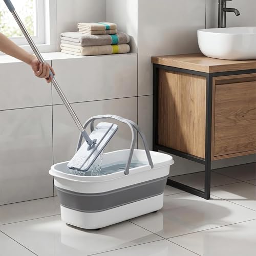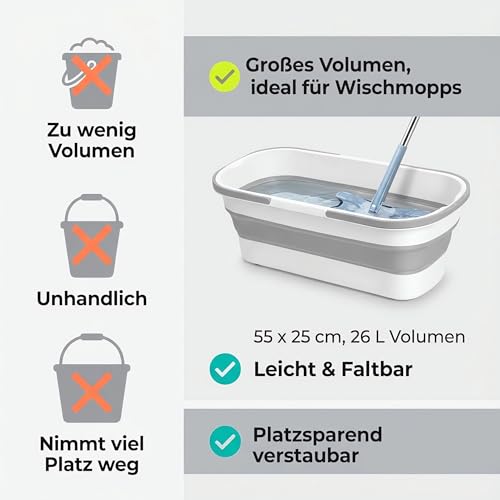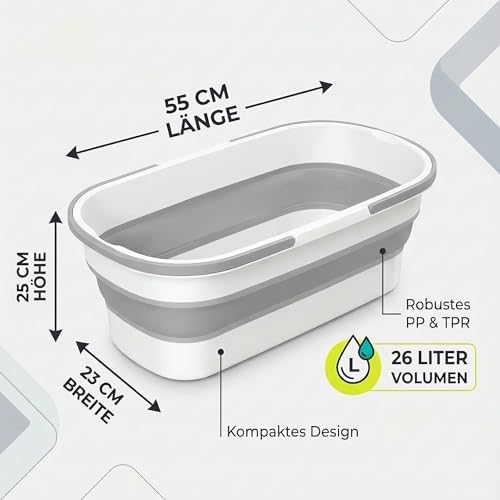 König Design - جردل قابل للطي بمساحة مسطحة كبيرة، 55 × 25 سم، جردل مسطح كبير قابل للطي، جردل ومساحة كبيرة محمولة