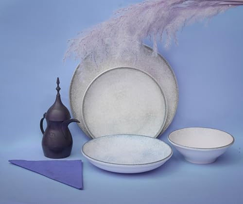 - طقم عشاء كامل مكون من 24 قطعة: يتضمن 6 قطع لكل منهما: طبق مسطح 21 سم، طبق مسطح 27 سم، وعاء 16 سم، طبق عميق 21 سم.