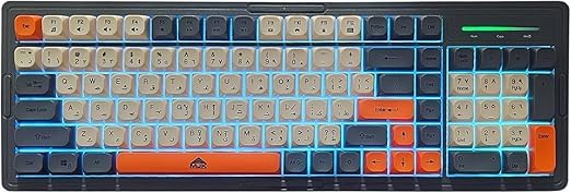 Generic - كيبورد العاب كيه 1 باضاءة خلفية واغطية مفاتيح رترو ونظام الوان ازرق وبرتقالي، تصميم كامل الحجم مع لوحة ارقام و101 مفتاح اضاءة ملونة
