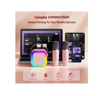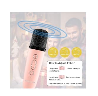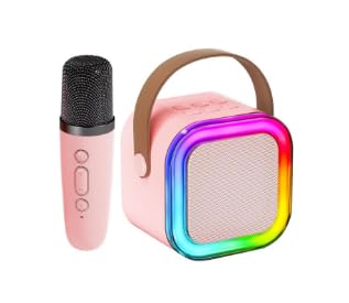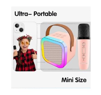 Generic - ميكروفون كاريوكي K22 لاسلكي صغير ومحمول للأطفال بمكبر صوت بلوتوث ألعاب موسيقية لعيد ميلاد ممتعة للبنات والأولاد والأطفال الصغار للغناء وأعياد الميلاد - وردي