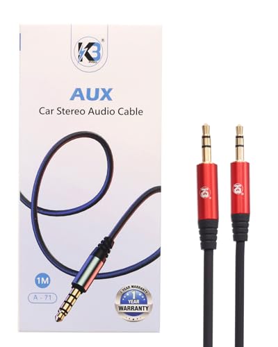 K3 - كابل صوت ستيريو A-71 3.5 ملم من كيه 3 - سلك ايه يو اكس مضفر بالنايلون بطول 1 م من ذكر إلى ذكر، صوت عالي الدقة HD، متوافق مع الهواتف الذكية والتابلت واللاب توب وستيريو السيارة وسماعات الرأس - أسود