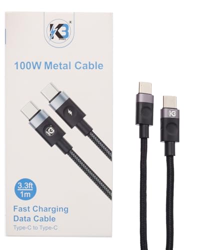 K3 - كابل شحن سريع K3 K85 (USB-C إلى USB-C)، سلك شاحن مضفر بالنايلون بطول 1 متر. يدعم توصيل الطاقة بقوة 100 واط ونقل البيانات، ومتوافق مع سامسونج جالكسي، بيكسل، شاومي، آيباد برو، والمزيد، لون أسود
