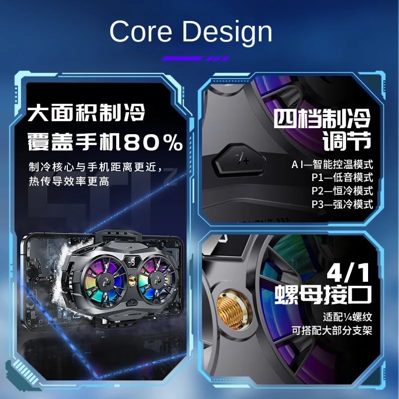 - 【جاهز للبث المباشر وإضاءة RGB】 مصمم بشكل فريد مع منفذ برغي لولبي قياسي 1/4 بوصة مدمج في الخلف، مما يجعله متوافق مع الحوامل الثلاثية (ترايبود) ومثبتات الحركة (Gimbal). هذا مثالي لمقدمي البث المباشر على تيك توك ومنشئي المحتوى الذين يحتاجون إلى الحفاظ على برودة هواتفهم أثناء البث. تضيف إضاءة RGB الديناميكية جواً رياضياً إلكترونياً غامراً (ملاحظة: الـ RGB تلقائي).