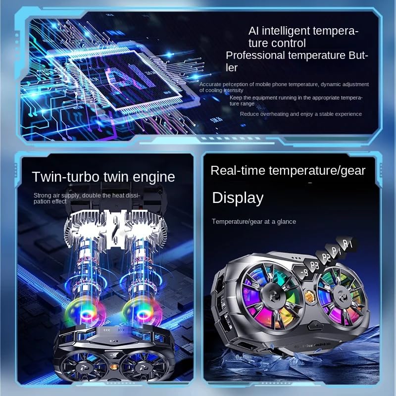 - 【أشباه موصلات مزدوجة ومراوح توربو】 تم تصميمه بنظام تبريد ثنائي النواة ومروحتين توربو عاليتي السرعة (تصل إلى 9000 دورة في الدقيقة). تضاعف هذه الهندسة المتقدمة مساحة سطح التبريد، مما يوفر قدرات تجميد فورية. يعمل على خفض درجة حرارة الهاتف بسرعة تصل إلى 35 درجة مئوية، مما يمنع بشكل فعال اختناق المعالج (CPU) وسقوط الإطارات أثناء الألعاب عالية التحميل مثل "ببجي موبايل" و"كود" و"جينشين إمباكت".