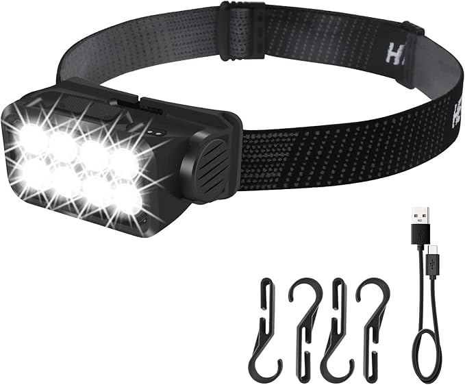 Generic - مصباح راس K354 قابل لاعادة الشحن، 1000 لومن 8 مصابيح LED ساطعة مع مستشعر حركة، USB C 5 اوضاع مقاومة للماء IPX4 مع 4 مشابك للبالغين للجري والمشي لمسافات طويلة والتخييم والصيد