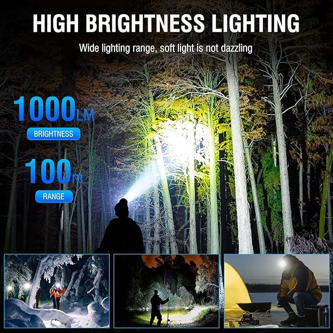 - مصباح أمامي فائق السطوع ➤➤ استخدم 8 خرزات LED، مع أقصى سطوع 1000 لومن، مسافة إشعاع 100 متر، يمكن أن تضيء بسهولة الطريق المظلم، وتوفر لك 4 مشابك مجانية (لا داعي للقلق بشأن السقوط من القبعة الصلبة)، رائعة لصيد الأسماك والجري والمشي لمسافات طويلة والتخييم والاستكشاف والطوارئ الخارجية والاستخدام اليومي. اختيار جيد كهدية لعيد الأب