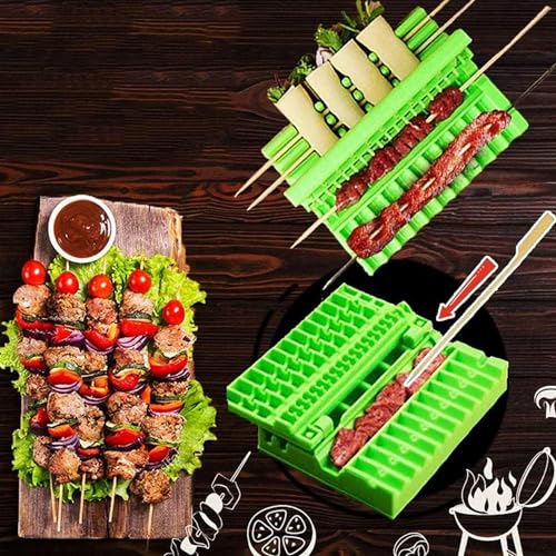 - 1. يعد صانع أسياخ اللحم أداة عملية لصنع كباب الشيش والكباب والأطعمة المشوية الأخرى اللذيذة. يسمح لك بتقطيع اللحوم والخضروات إلى مكعبات متساوية ووضعها على الأسياخ. هذه الأداة متعددة الاستخدامات مناسبة لمجموعة متنوعة من الأطعمة، بما في ذلك اللحوم والخضروات والفواكه والمزيد. إنه مثالي للاستخدام أثناء حفلات الشواء ورحلات التخييم والأنشطة الخارجية الأخرى.