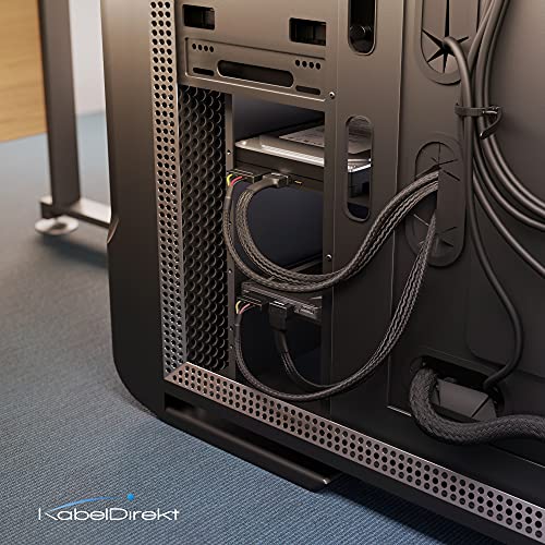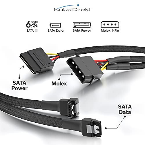 KabelDirekt - كابل دايركت – كابل طاقة 4 دبوس موليكس إلى كابل طاقة ساتا"2 x 15-دبوس" 30 سم + كابل بيانات ساتا 3 7 سنون، 6 غيغابايت في الثانية بزاوية 90 درجة + كابل ساتا 3 7 سنون 6 جيجا في الثانية 60 سم