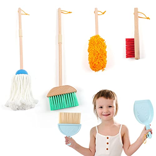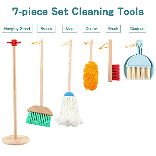 KABENFIS - أدوات تنظيف خشبية للأطفال 7 قطع من كابينفيس، ألعاب تظاهرية للمنزل للأولاد والبنات