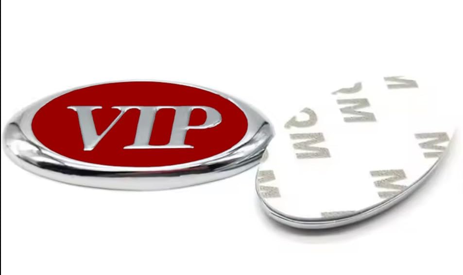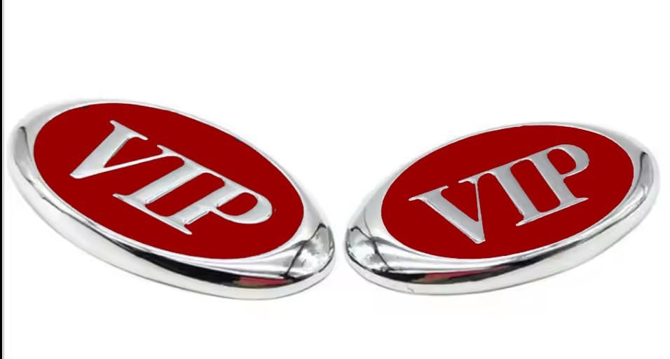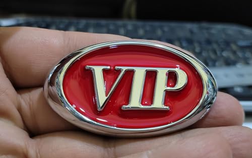 Generic - ملصق ستيكر علامة شعار سيارة ثلاثى الابعاد - مناسب للسيارات والشاحنات والدراجات عبارة فى اى بى VIP لون سلفر فى احمر معدن - بيضاوى مقاس 6.2 سم فى 3.5 سم - من كابر مصر 2020