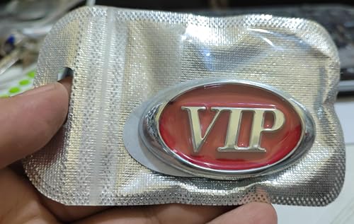 - ملصق ستيكر علامة شعار سيارة ثلاثى الابعاد - مناسب للسيارات والشاحنات والدراجات عبارة فى اى بى VIP لون سلفر فى احمر معدن - بيضاوى مقاس 6.2 سم فى 3.5 سم