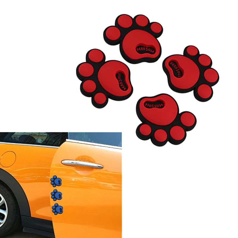 Generic - واقي ممتص للصدمات لباب السيارة (ع شكل قدم)- 4 قطع - لون احمر - (كود:1514) - من كابر مصر 2020