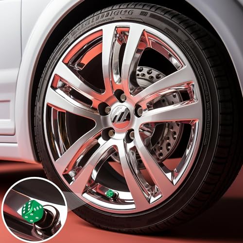 Generic - طقم غطاء بلف صمام اطارات السيارات على شكل نرد للسيارات والدراجات النارية والشاحنات والدراجات، غطاء عالمي للحماية من الغبار والاتربة - عدد 4 قطع لون اخضر فاتح - من كابر مصر 2020