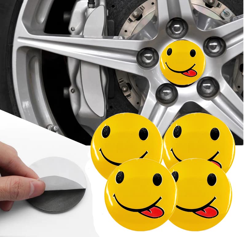 - ملصق غطاء محور اطارات السيارة ثلاثى الابعاد ملصق طبة جنط سيارة متوافق مع جميع انواع السيارات -اشكال سمايل - عدد 4 قطع
