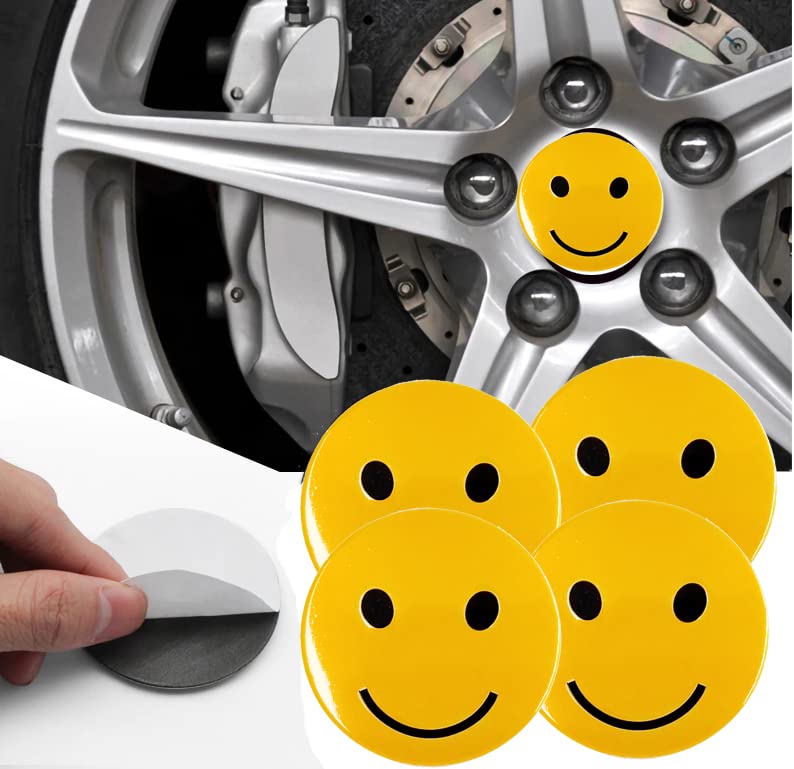 - ملصق غطاء محور اطارات السيارة ثلاثى الابعاد ملصق طبة جنط سيارة متوافق مع جميع انواع السيارات -اشكال سمايل - عدد 4 قطع