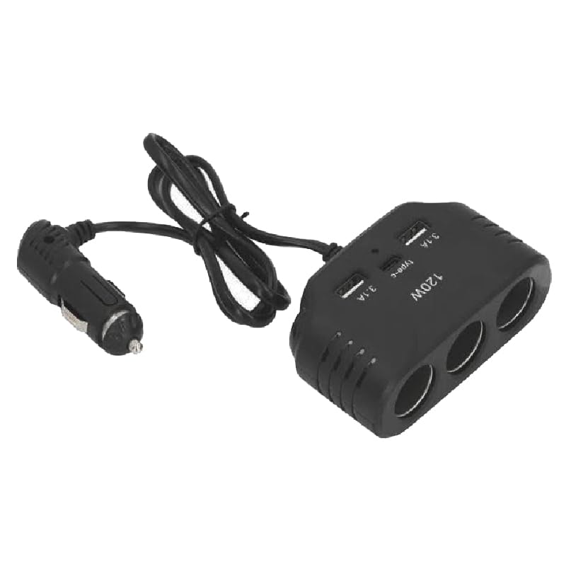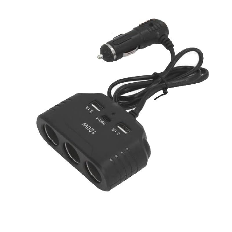Generic - قابس متعدد الفتحات، موزع مقبس ولاعة السيارة ، للسيارات والشاحنات (مشترك 2 يو اس بى - تايب سى - 3 عين ، كود : 9008) من كابر مصر 2020